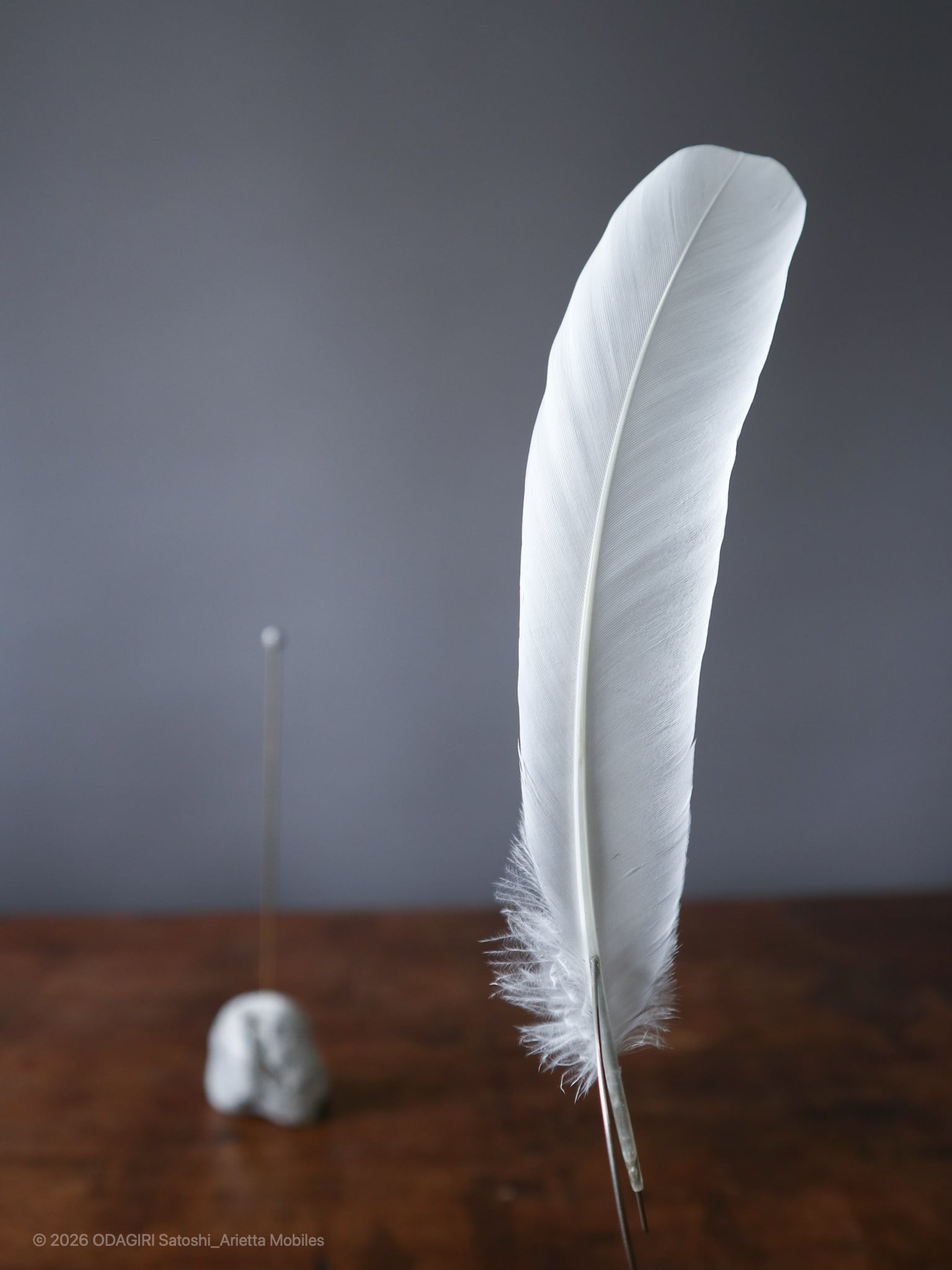 時々見つけることのある白鷺の羽根は野生の白。使用できる羽根に出会えたことはとても幸運でした。