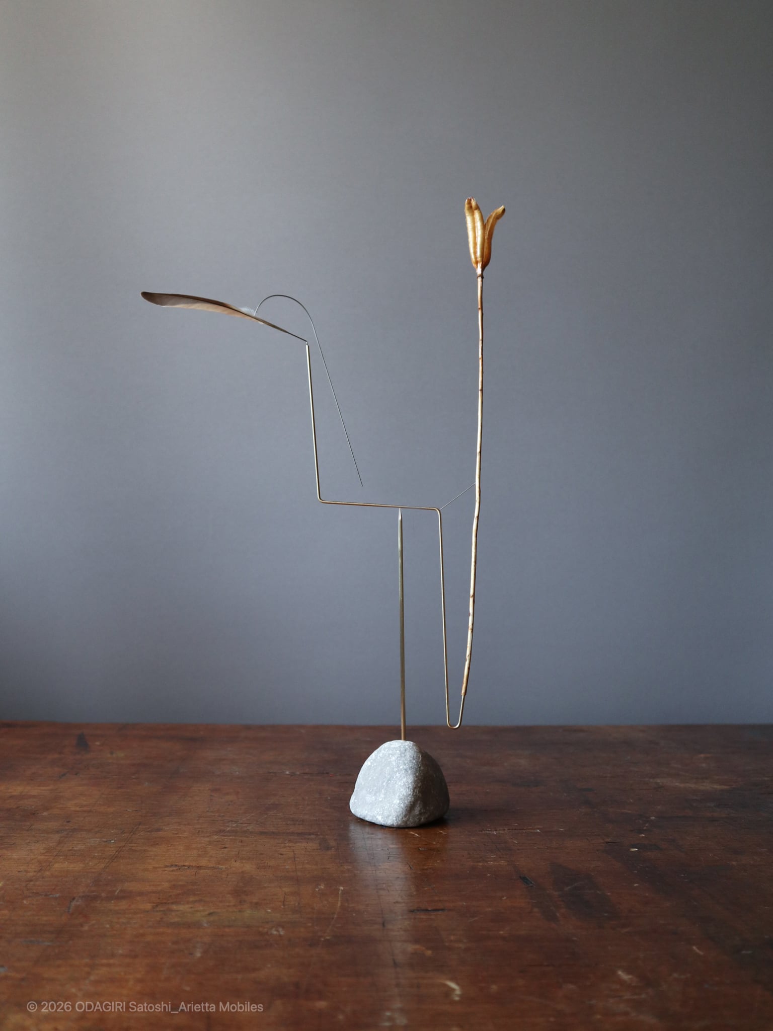 関連し合っていることを証明するのは比較的容易だけれど、関連し合っていないことを明確に示すのは難しいと常々思っています。そんな中、谷を流れる川の水に磨かれながら巡る季節を幾度も見てきている小石。圧倒的な観察量をもつ賢い小石ならば、ツグミと百合の間にある隠れたバランスを知っているのかもしれません。