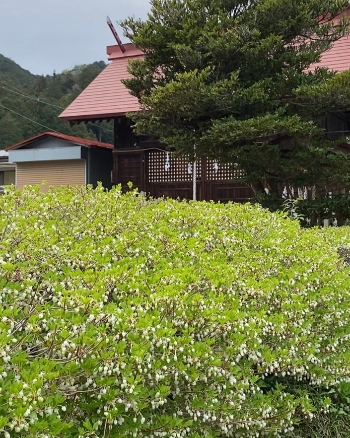集落に新しいカフェができるようです。以前からあった建物を修繕したり、新しい建物が建ったり。空き家が出てきたり、以前あったはずの何かがなくなっていたりする一方で、新しくこの地で暮らしが始まったり、集落へ通うようになったりしているようです。今は春、ドウダンツツジが満点の星空のように、小さな花を満開に咲かせています。